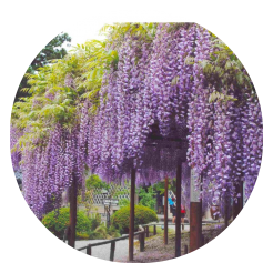Цветение: середина апреля - середина мая Глицинии и азалии, конец мая-июнь